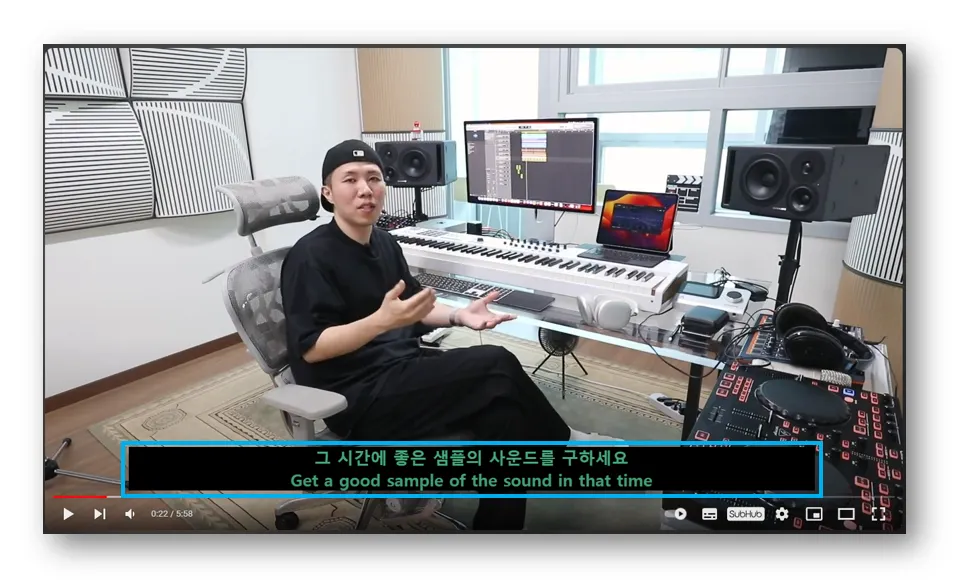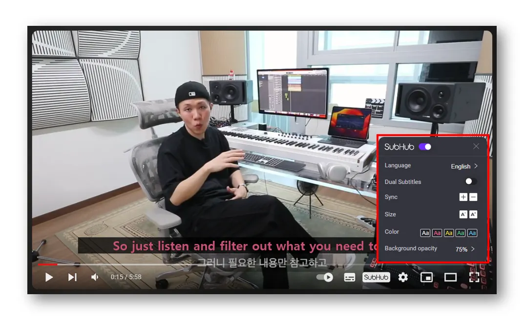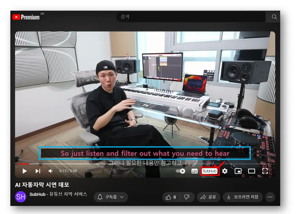 그리고 YouTube 재생 화면에서 SubHub 아이콘을 하단에서 보실 수 있습니다.