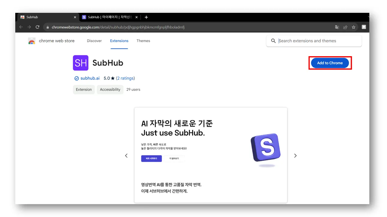 SubHub “유튜브 자막 뷰어 다운로드” 선택하세요.